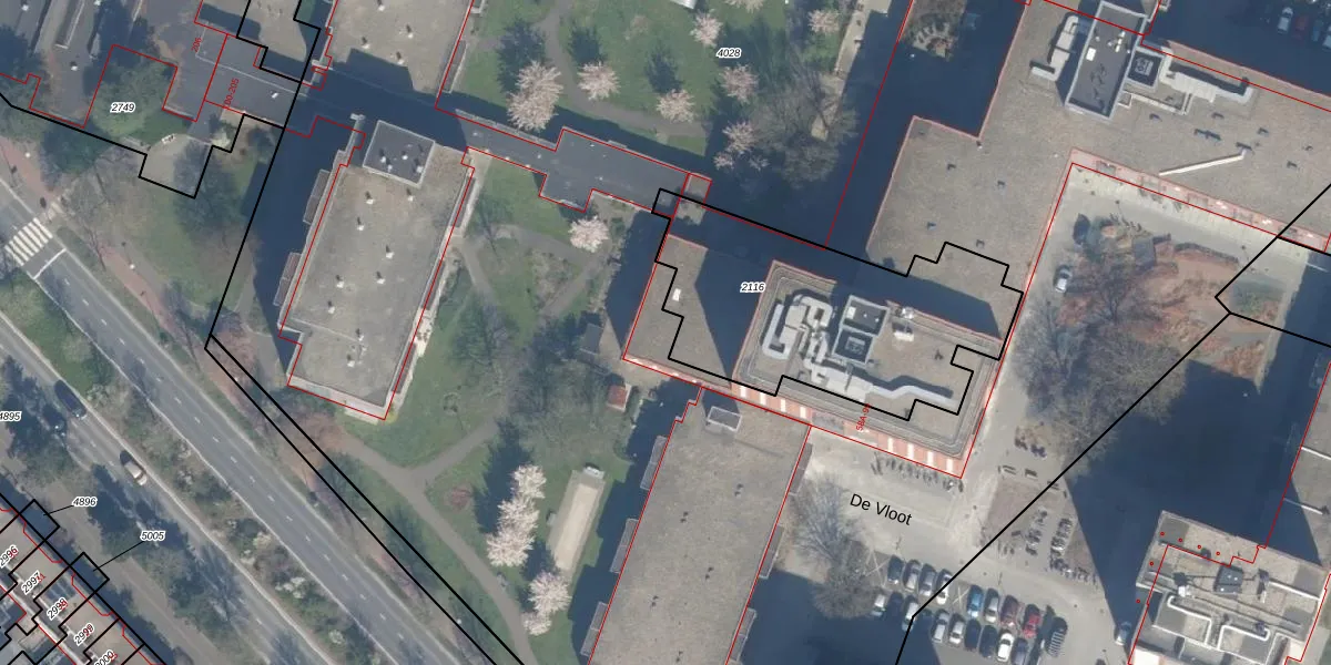 Het perceel waarop De Vloot 64-K-1B5 staat heeft een oppervlakte van 2,1 ha. Dit is een zeer groot perceel. De perceeloppervlakte wordt geregistreerd door het Kadaster. Gedetailleerde informatie over de maten van dit perceel kunt u vinden in het rapport Kadastrale kaart met maatvoering van De Vloot 64-K-1B5.
