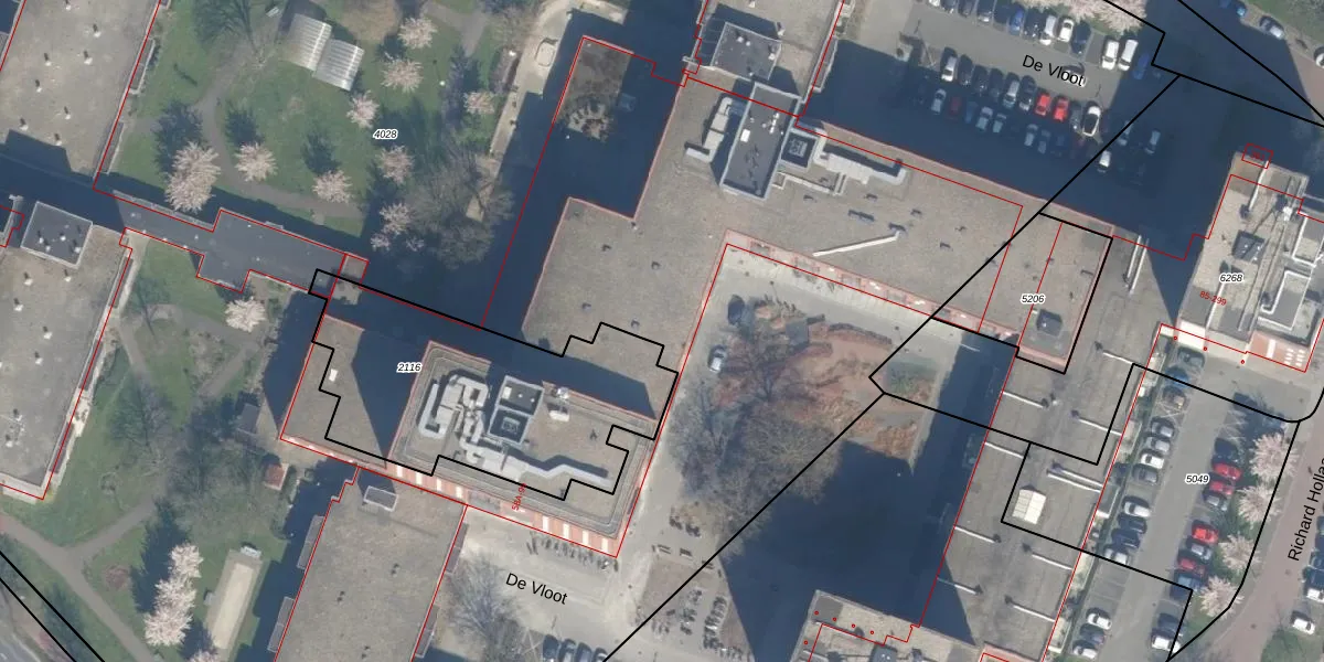 Het perceel waarop De Vloot 64-K-2B3 staat heeft een oppervlakte van 2,1 ha. Dit is een zeer groot perceel. De perceeloppervlakte wordt geregistreerd door het Kadaster. Gedetailleerde informatie over de maten van dit perceel kunt u vinden in het rapport Kadastrale kaart met maatvoering van De Vloot 64-K-2B3.