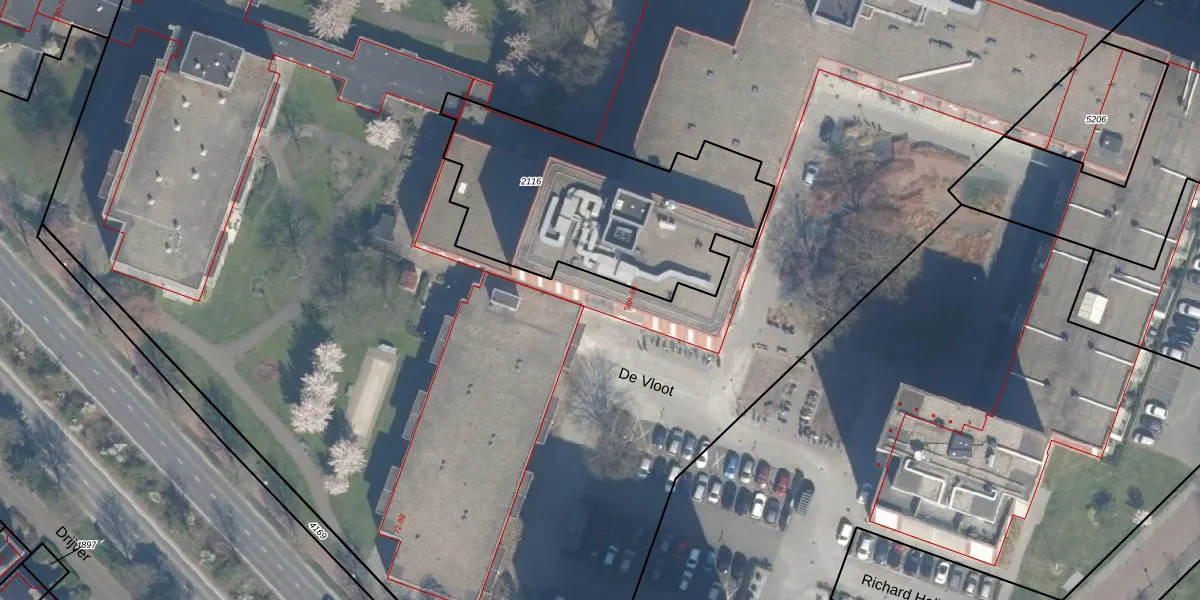 Het perceel waarop De Vloot 69-C-9 staat heeft een oppervlakte van 2,1 ha. Dit is een zeer groot perceel. De perceeloppervlakte wordt geregistreerd door het Kadaster. Gedetailleerde informatie over de maten van dit perceel kunt u vinden in het rapport Kadastrale kaart met maatvoering van De Vloot 69-C-9.