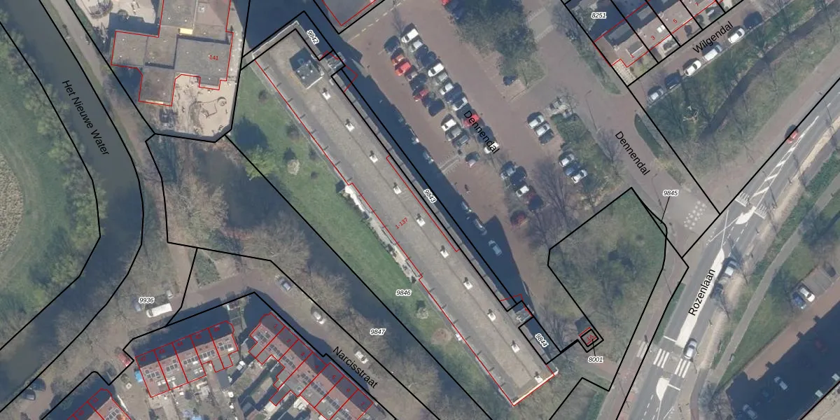 Het perceel waarop Dennendal 39 staat heeft een oppervlakte van 3363 m². Dit is een zeer groot perceel. De perceeloppervlakte wordt geregistreerd door het Kadaster. Gedetailleerde informatie over de maten van dit perceel kunt u vinden in het rapport Kadastrale kaart met maatvoering van Dennendal 39.