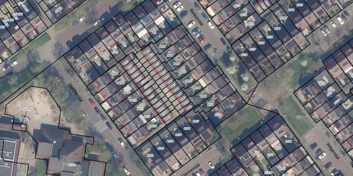 Gebruik de zoekbalk of klik op een perceel voor informatie over de adressen binnen dit perceel.