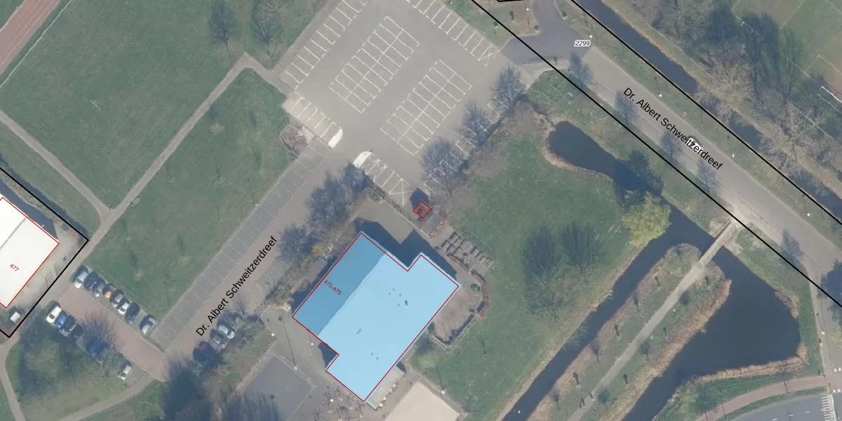 Het perceel waarop Dr. Albert Schweitzerdreef 485 staat heeft een oppervlakte van 6,4 ha. Dit is een zeer groot perceel. De perceeloppervlakte wordt geregistreerd door het Kadaster. Gedetailleerde informatie over de maten van dit perceel kunt u vinden in het rapport Kadastrale kaart met maatvoering van Dr. Albert Schweitzerdreef 485.