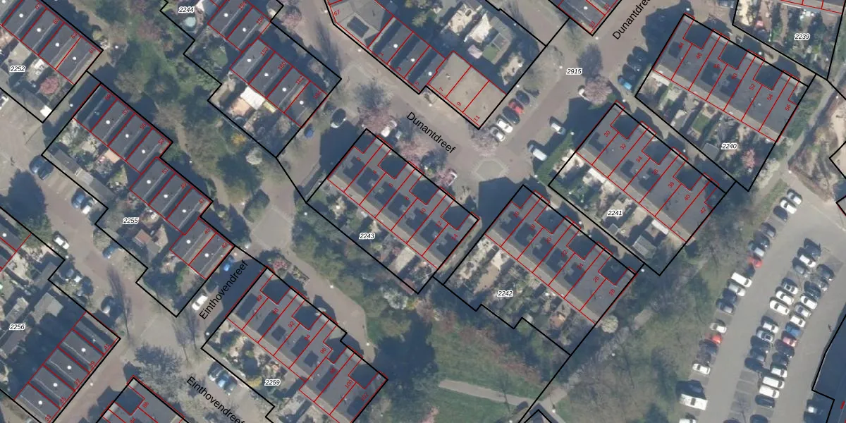 Dunantdreef 10 is gelegen op kadastraal perceel MSS00A2243. Deze kadastrale aanduiding is uniek en wordt gebruikt door het Kadaster om eigendomsrechten en andere zakelijke rechten vast te leggen. Het perceel maakt onderdeel uit van de kadastrale gemeente Maassluis.