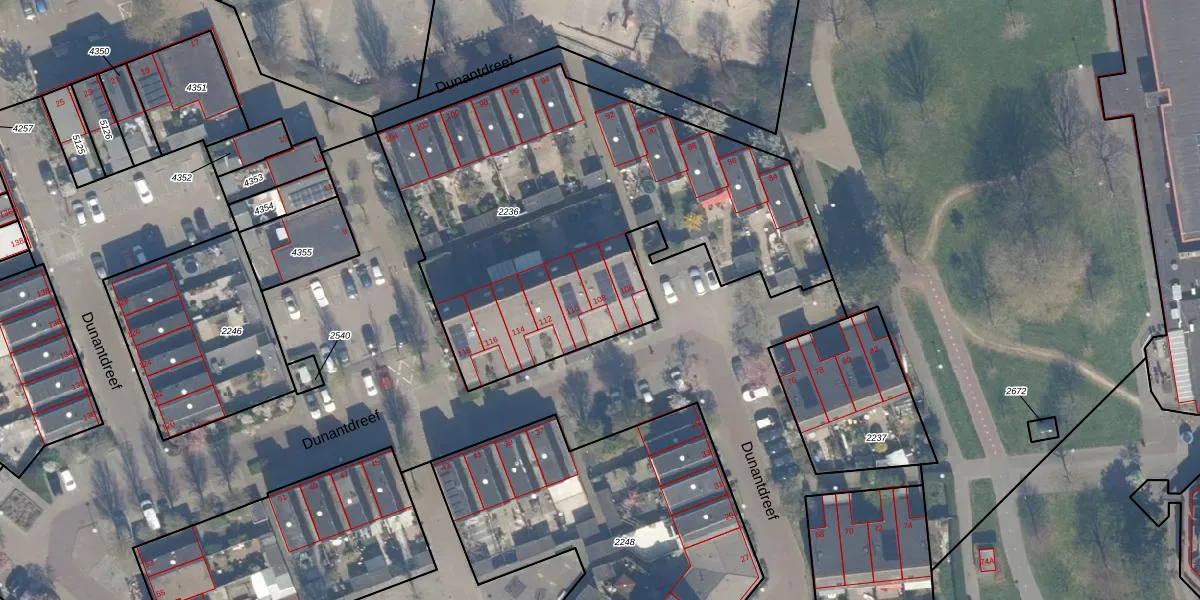 Dunantdreef 108 is gelegen op kadastraal perceel MSS00A2236. Deze kadastrale aanduiding is uniek en wordt gebruikt door het Kadaster om eigendomsrechten en andere zakelijke rechten vast te leggen. Het perceel maakt onderdeel uit van de kadastrale gemeente Maassluis.