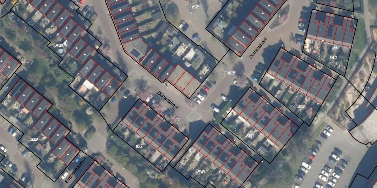 Dunantdreef 11 is gelegen op kadastraal perceel MSS00A2249. Deze kadastrale aanduiding is uniek en wordt gebruikt door het Kadaster om eigendomsrechten en andere zakelijke rechten vast te leggen. Het perceel maakt onderdeel uit van de kadastrale gemeente Maassluis.