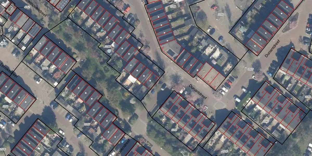 Dunantdreef 164 is gelegen op kadastraal perceel MSS00A2244. Deze kadastrale aanduiding is uniek en wordt gebruikt door het Kadaster om eigendomsrechten en andere zakelijke rechten vast te leggen. Het perceel maakt onderdeel uit van de kadastrale gemeente Maassluis.