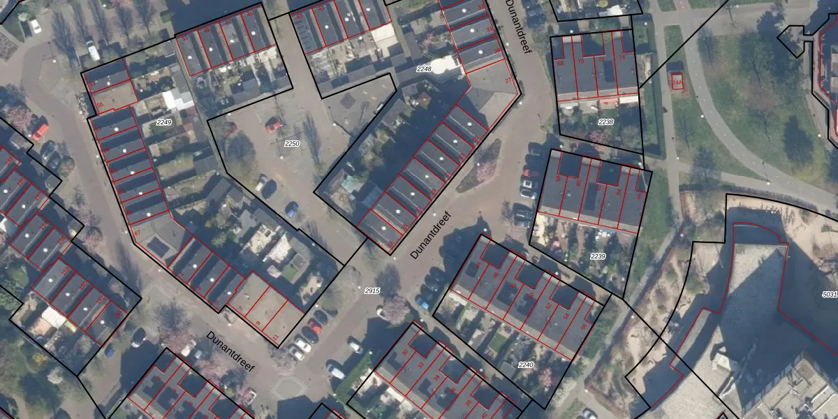 Dunantdreef 17 is gelegen op kadastraal perceel MSS00A2248. Deze kadastrale aanduiding is uniek en wordt gebruikt door het Kadaster om eigendomsrechten en andere zakelijke rechten vast te leggen. Het perceel maakt onderdeel uit van de kadastrale gemeente Maassluis.