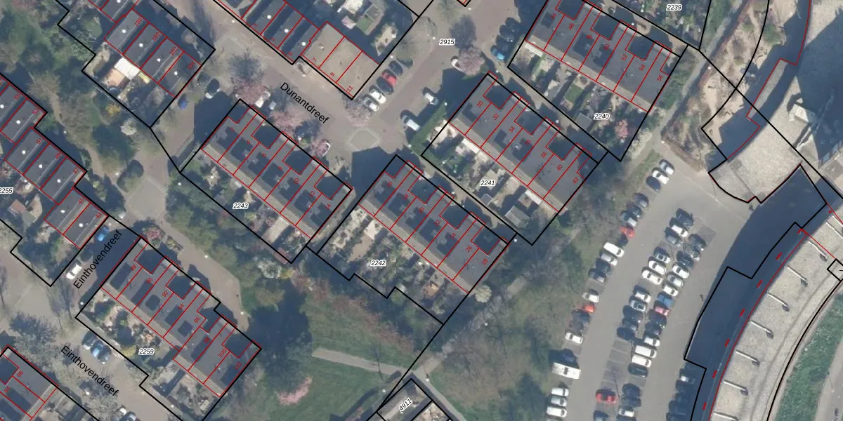 Dunantdreef 20 is gelegen op kadastraal perceel MSS00A2242. Deze kadastrale aanduiding is uniek en wordt gebruikt door het Kadaster om eigendomsrechten en andere zakelijke rechten vast te leggen. Het perceel maakt onderdeel uit van de kadastrale gemeente Maassluis.