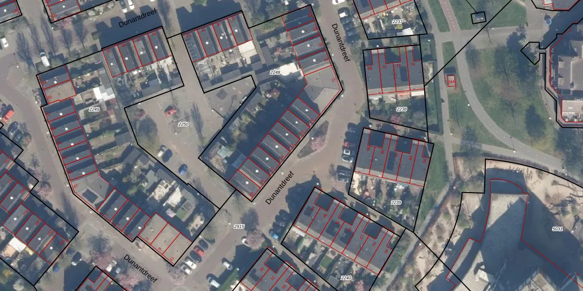 Dunantdreef 21 is gelegen op kadastraal perceel MSS00A2248. Deze kadastrale aanduiding is uniek en wordt gebruikt door het Kadaster om eigendomsrechten en andere zakelijke rechten vast te leggen. Het perceel maakt onderdeel uit van de kadastrale gemeente Maassluis.