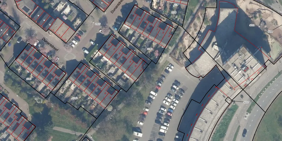 Dunantdreef 42 is gelegen op kadastraal perceel MSS00A2241. Deze kadastrale aanduiding is uniek en wordt gebruikt door het Kadaster om eigendomsrechten en andere zakelijke rechten vast te leggen. Het perceel maakt onderdeel uit van de kadastrale gemeente Maassluis.