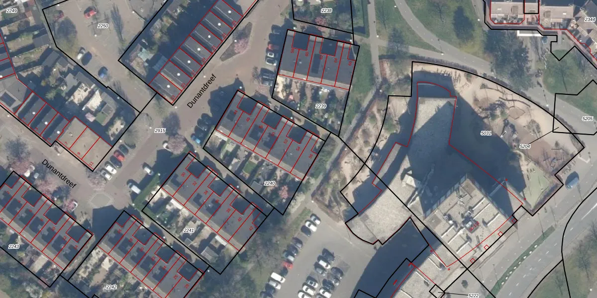 Dunantdreef 54 is gelegen op kadastraal perceel MSS00A2240. Deze kadastrale aanduiding is uniek en wordt gebruikt door het Kadaster om eigendomsrechten en andere zakelijke rechten vast te leggen. Het perceel maakt onderdeel uit van de kadastrale gemeente Maassluis.