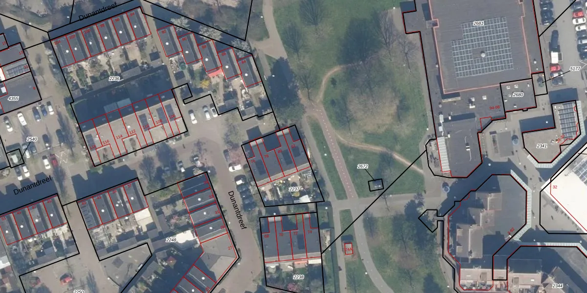 Dunantdreef 82 is gelegen op kadastraal perceel MSS00A2237. Deze kadastrale aanduiding is uniek en wordt gebruikt door het Kadaster om eigendomsrechten en andere zakelijke rechten vast te leggen. Het perceel maakt onderdeel uit van de kadastrale gemeente Maassluis.
