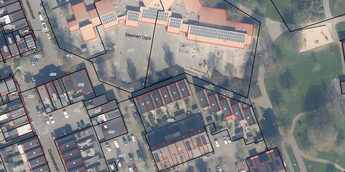 Dunantdreef 96 is gelegen op kadastraal perceel MSS00A2236. Deze kadastrale aanduiding is uniek en wordt gebruikt door het Kadaster om eigendomsrechten en andere zakelijke rechten vast te leggen. Het perceel maakt onderdeel uit van de kadastrale gemeente Maassluis.