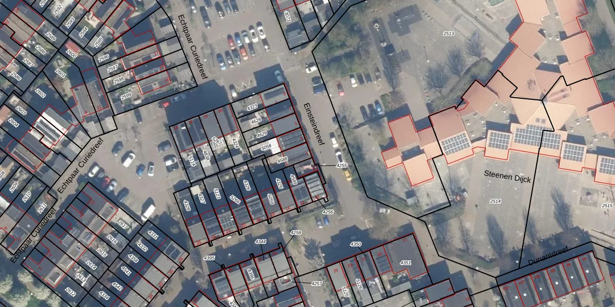 Het perceel waarop Einsteindreef 1 staat heeft een oppervlakte van 76 m². Dit is een klein perceel. De perceeloppervlakte wordt geregistreerd door het Kadaster. Gedetailleerde informatie over de maten van dit perceel kunt u vinden in het rapport Kadastrale kaart met maatvoering van Einsteindreef 1.