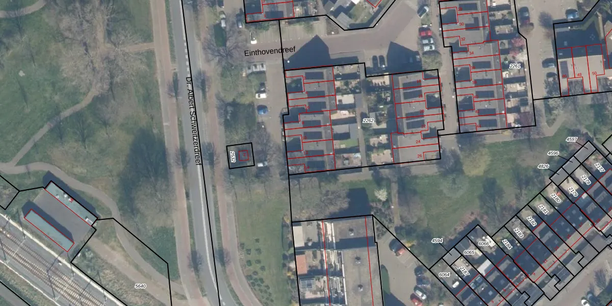 Einthovendreef 12 is gelegen op kadastraal perceel MSS00A2262. Deze kadastrale aanduiding is uniek en wordt gebruikt door het Kadaster om eigendomsrechten en andere zakelijke rechten vast te leggen. Het perceel maakt onderdeel uit van de kadastrale gemeente Maassluis.