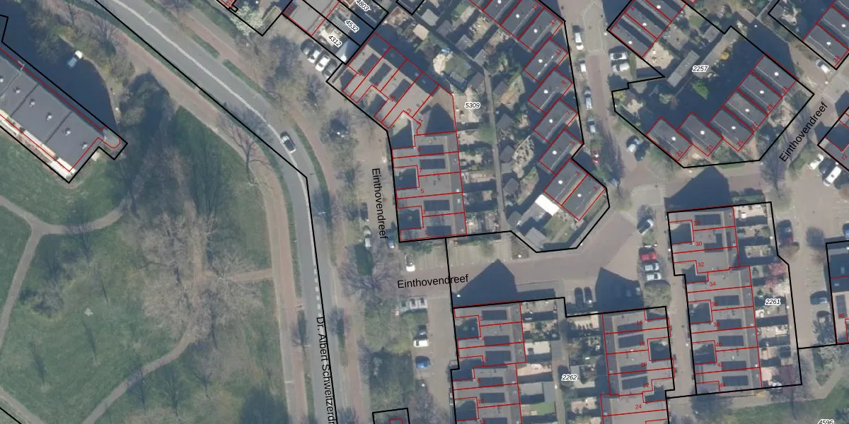 Einthovendreef 3 is gelegen op kadastraal perceel MSS00A5309. Deze kadastrale aanduiding is uniek en wordt gebruikt door het Kadaster om eigendomsrechten en andere zakelijke rechten vast te leggen. Het perceel maakt onderdeel uit van de kadastrale gemeente Maassluis.