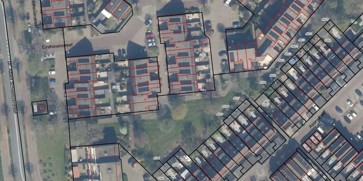 Het perceel waarop Einthovendreef 44 staat heeft een oppervlakte van 1078 m². Dit is een zeer groot perceel. De perceeloppervlakte wordt geregistreerd door het Kadaster. Gedetailleerde informatie over de maten van dit perceel kunt u vinden in het rapport Kadastrale kaart met maatvoering van Einthovendreef 44.