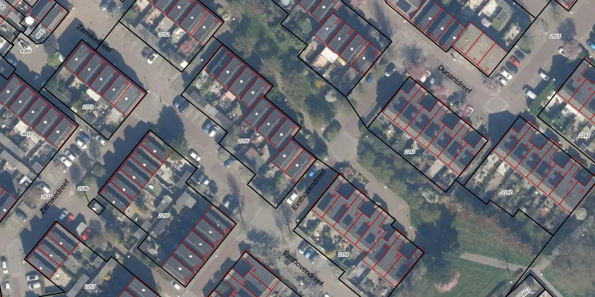Einthovendreef 45 is gelegen op kadastraal perceel MSS00A2255. Deze kadastrale aanduiding is uniek en wordt gebruikt door het Kadaster om eigendomsrechten en andere zakelijke rechten vast te leggen. Het perceel maakt onderdeel uit van de kadastrale gemeente Maassluis.