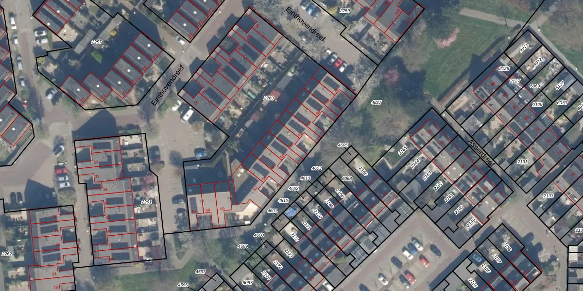 Het perceel waarop Einthovendreef 60 staat heeft een oppervlakte van 2565 m². Dit is een zeer groot perceel. De perceeloppervlakte wordt geregistreerd door het Kadaster. Gedetailleerde informatie over de maten van dit perceel kunt u vinden in het rapport Kadastrale kaart met maatvoering van Einthovendreef 60.