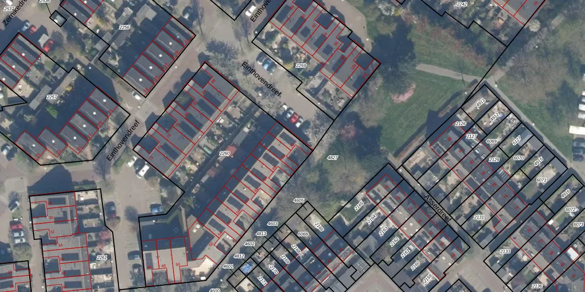 Het perceel waarop Einthovendreef 70 staat heeft een oppervlakte van 2565 m². Dit is een zeer groot perceel. De perceeloppervlakte wordt geregistreerd door het Kadaster. Gedetailleerde informatie over de maten van dit perceel kunt u vinden in het rapport Kadastrale kaart met maatvoering van Einthovendreef 70.