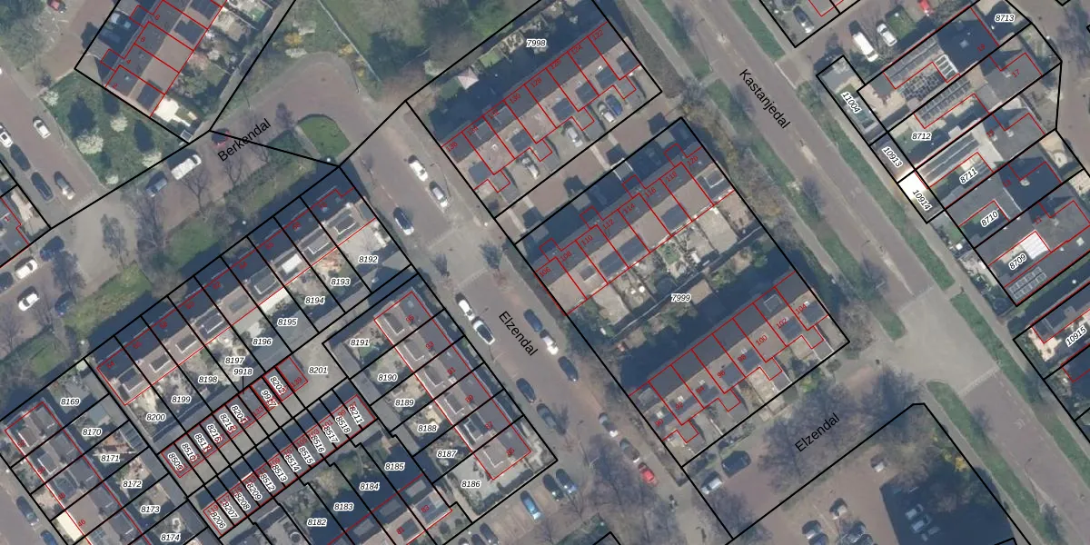 Het perceel waarop Elzendal 106 staat heeft een oppervlakte van 1996 m². Dit is een zeer groot perceel. De perceeloppervlakte wordt geregistreerd door het Kadaster. Gedetailleerde informatie over de maten van dit perceel kunt u vinden in het rapport Kadastrale kaart met maatvoering van Elzendal 106.