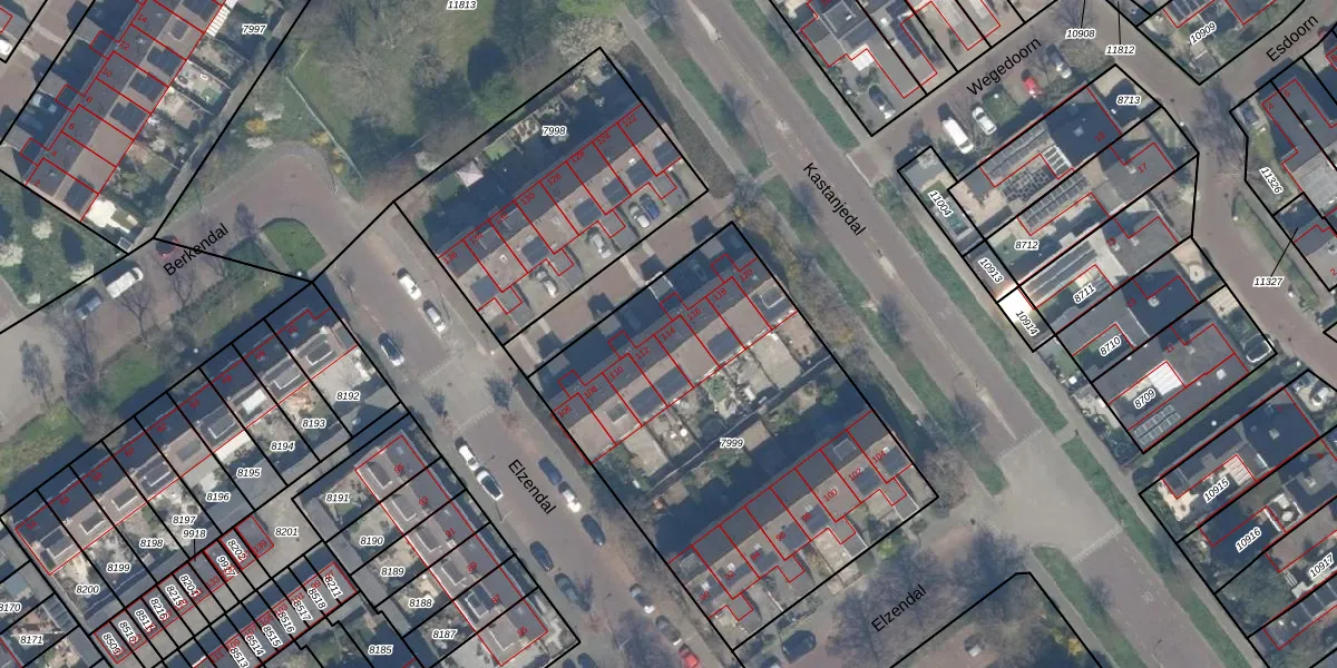 Het perceel waarop Elzendal 114 staat heeft een oppervlakte van 1996 m². Dit is een zeer groot perceel. De perceeloppervlakte wordt geregistreerd door het Kadaster. Gedetailleerde informatie over de maten van dit perceel kunt u vinden in het rapport Kadastrale kaart met maatvoering van Elzendal 114.