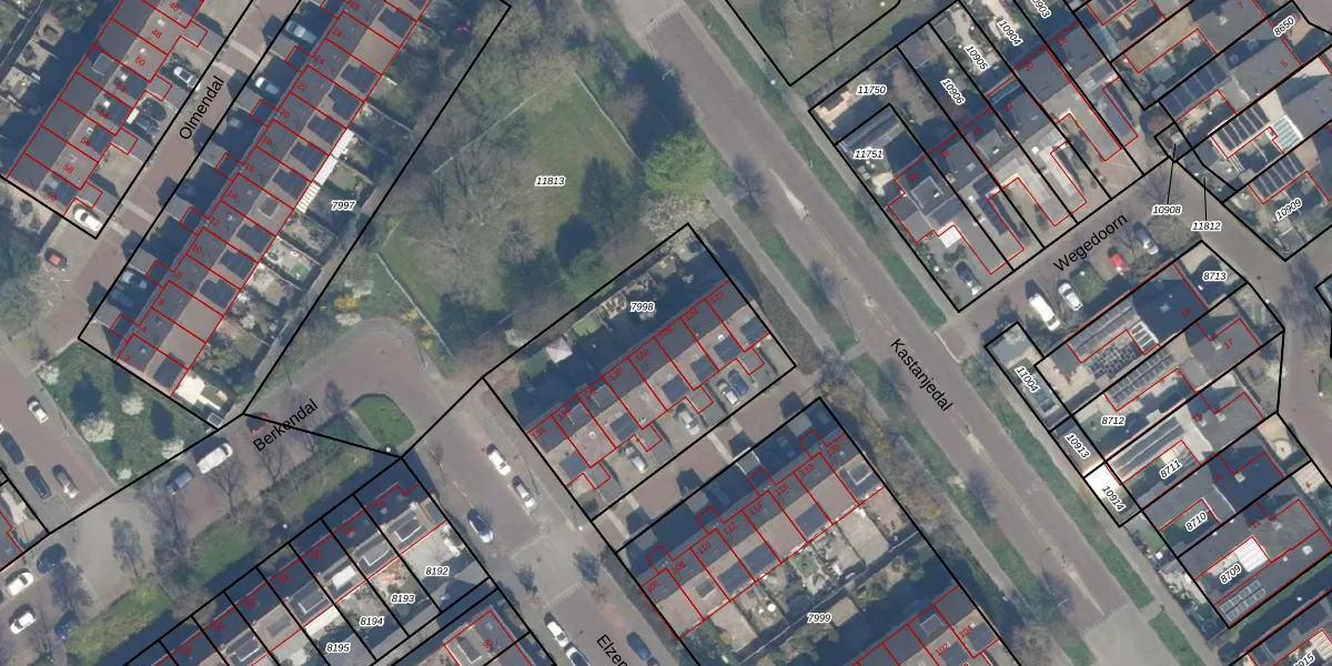 Het perceel waarop Elzendal 126 staat heeft een oppervlakte van 1034 m². Dit is een zeer groot perceel. De perceeloppervlakte wordt geregistreerd door het Kadaster. Gedetailleerde informatie over de maten van dit perceel kunt u vinden in het rapport Kadastrale kaart met maatvoering van Elzendal 126.