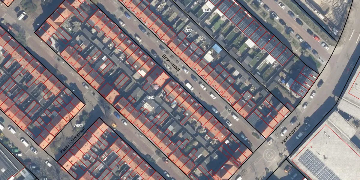 Het perceel waarop Esserstraat 17 staat heeft een oppervlakte van 4628 m². Dit is een zeer groot perceel. De perceeloppervlakte wordt geregistreerd door het Kadaster. Gedetailleerde informatie over de maten van dit perceel kunt u vinden in het rapport Kadastrale kaart met maatvoering van Esserstraat 17.