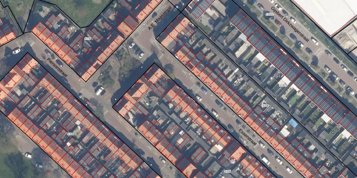 Het perceel waarop Esserstraat 43 staat heeft een oppervlakte van 4628 m². Dit is een zeer groot perceel. De perceeloppervlakte wordt geregistreerd door het Kadaster. Gedetailleerde informatie over de maten van dit perceel kunt u vinden in het rapport Kadastrale kaart met maatvoering van Esserstraat 43.