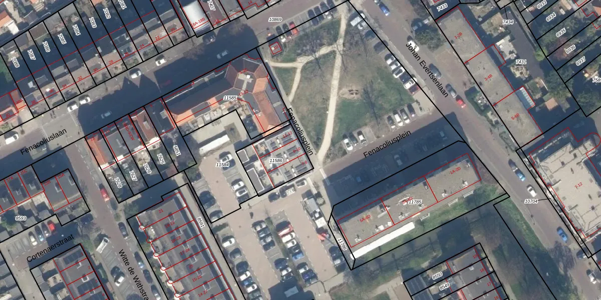 Fenacoliusplein 9 is gelegen op kadastraal perceel MSS00D11586. Deze kadastrale aanduiding is uniek en wordt gebruikt door het Kadaster om eigendomsrechten en andere zakelijke rechten vast te leggen. Het perceel maakt onderdeel uit van de kadastrale gemeente Maassluis.