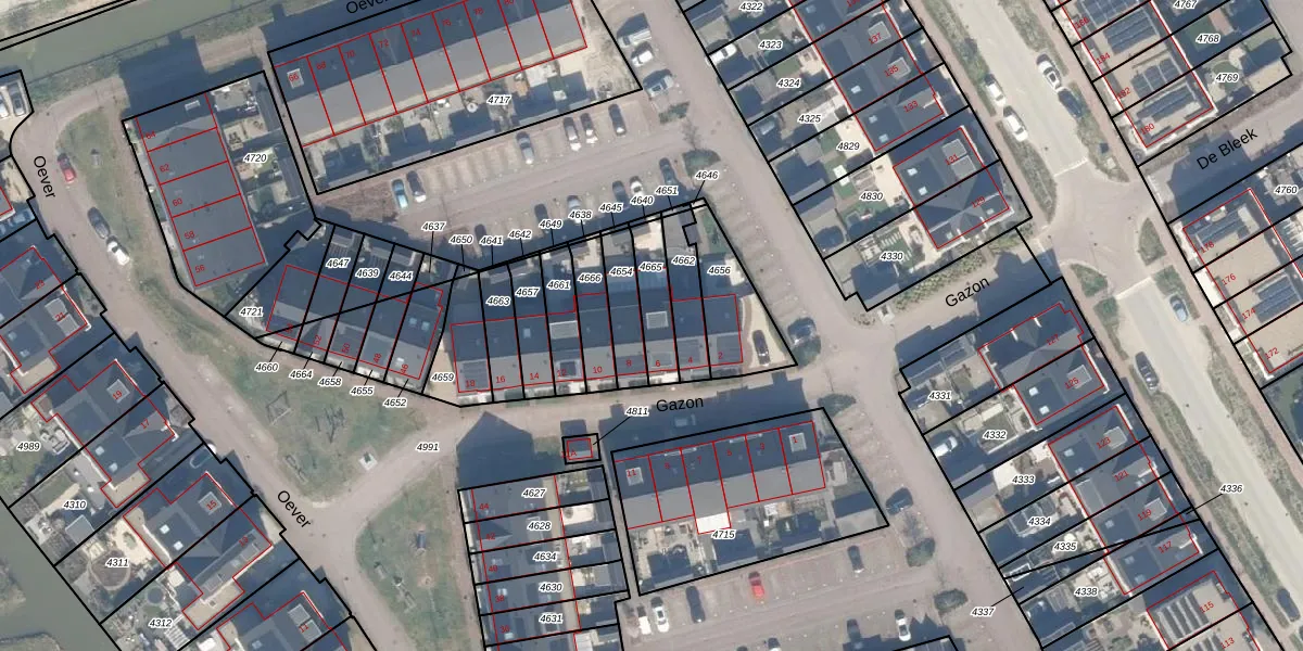 Het perceel waarop Gazon 6 staat heeft een oppervlakte van 120 m². Dit is een middelgroot perceel. De perceeloppervlakte wordt geregistreerd door het Kadaster. Gedetailleerde informatie over de maten van dit perceel kunt u vinden in het rapport Kadastrale kaart met maatvoering van Gazon 6.
