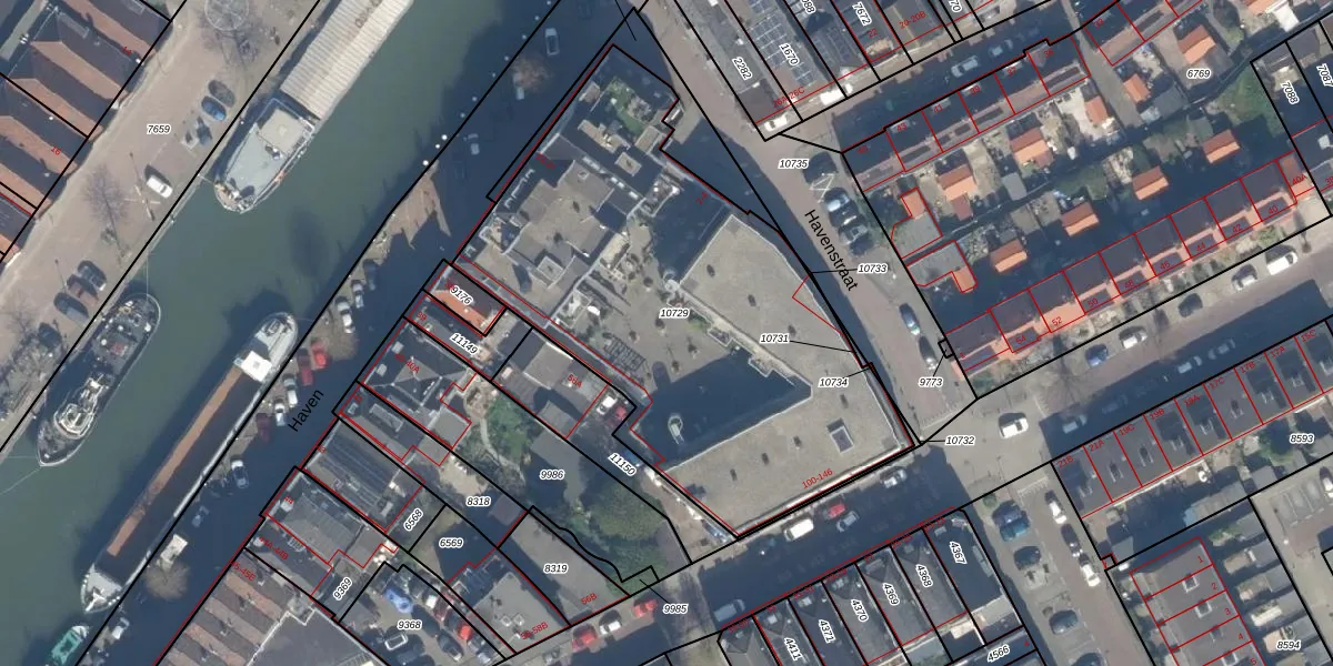 Het perceel waarop Haven 37 staat heeft een oppervlakte van 2348 m². Dit is een zeer groot perceel. De perceeloppervlakte wordt geregistreerd door het Kadaster. Gedetailleerde informatie over de maten van dit perceel kunt u vinden in het rapport Kadastrale kaart met maatvoering van Haven 37.