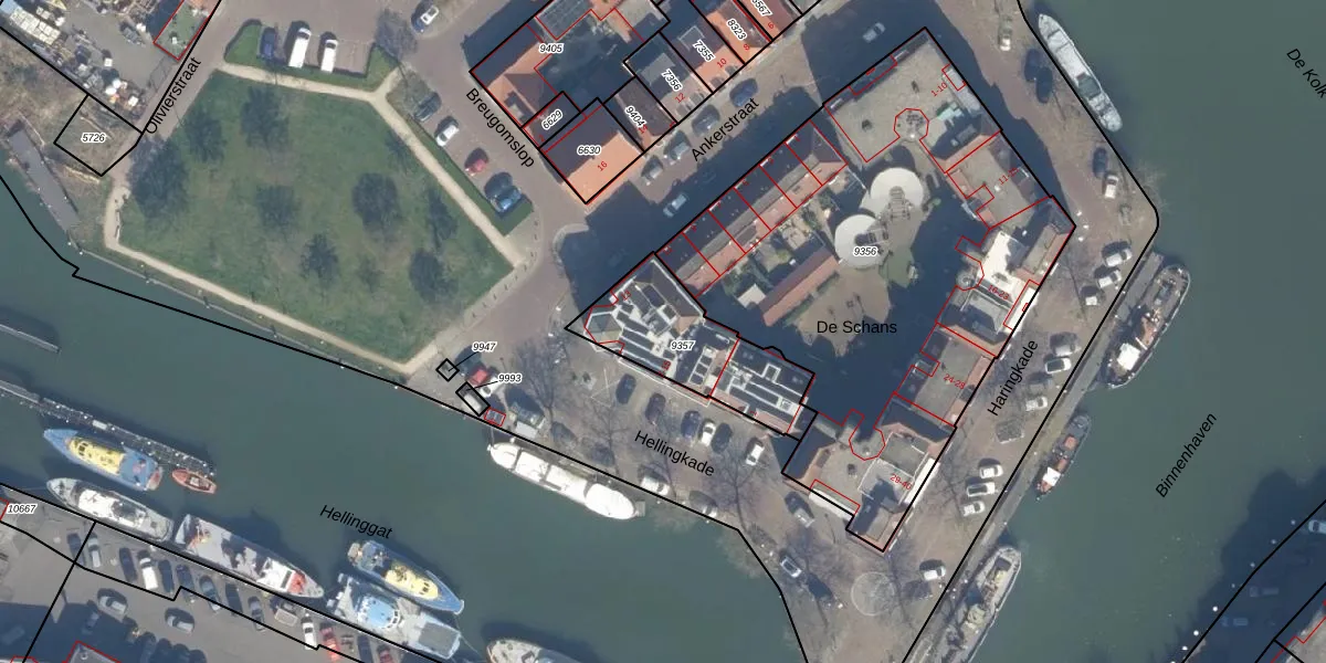 Het adres is gelegen op perceel 9357 in de sectie D en de kadastrale gemeente Maassluis. De kadastrale aanduiding is aldus MSS00-D-9357. De gemiddelde perceelgrootte in Maassluis is 949,6 m². Dit perceel is kleiner: de perceeloppervlakte bedraagt 418 m². Het grootste perceel in de kadastrale gemeente is 34,0 ha. Het kleinste perceel heeft een oppervlakte van 0 m². Op het perceel zijn 10 adressen aanwezig. In de Basisregistratie Kadaster (BRK) werden de grenzen van het perceel geregistreerd op 11-07-2000.