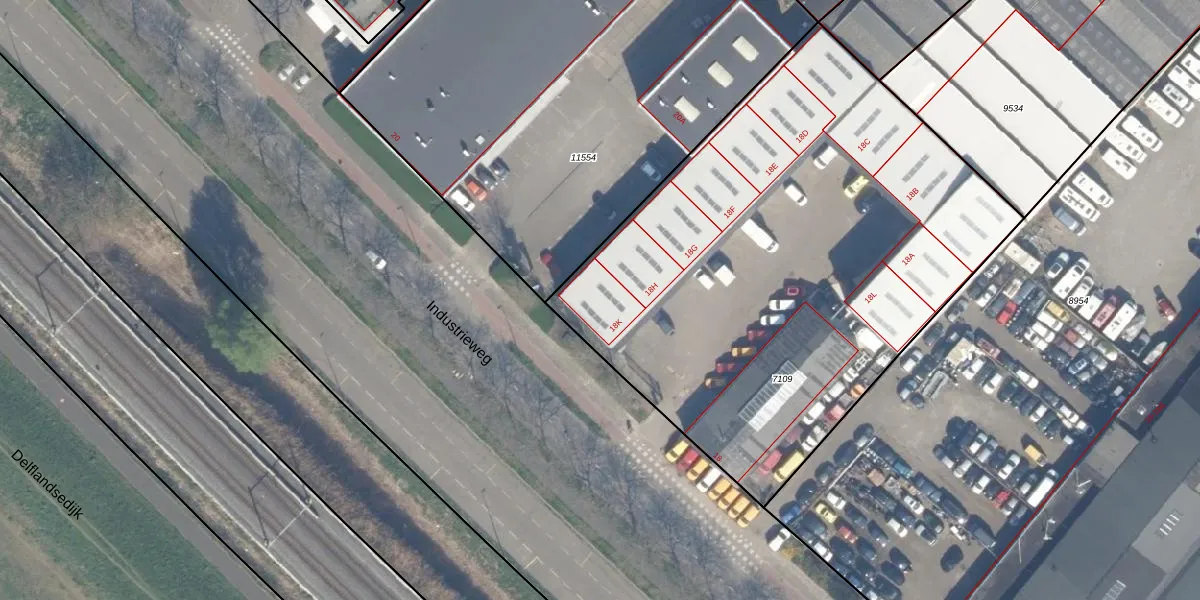 Industrieweg 18-K is gelegen op kadastraal perceel MSS00D7109. Deze kadastrale aanduiding is uniek en wordt gebruikt door het Kadaster om eigendomsrechten en andere zakelijke rechten vast te leggen. Het perceel maakt onderdeel uit van de kadastrale gemeente Maassluis.