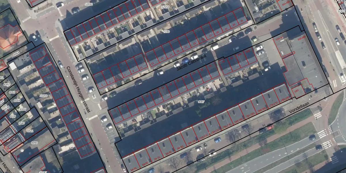 Het perceel waarop Jacob Catsstraat 16 staat heeft een oppervlakte van 4774 m². Dit is een zeer groot perceel. De perceeloppervlakte wordt geregistreerd door het Kadaster. Gedetailleerde informatie over de maten van dit perceel kunt u vinden in het rapport Kadastrale kaart met maatvoering van Jacob Catsstraat 16.