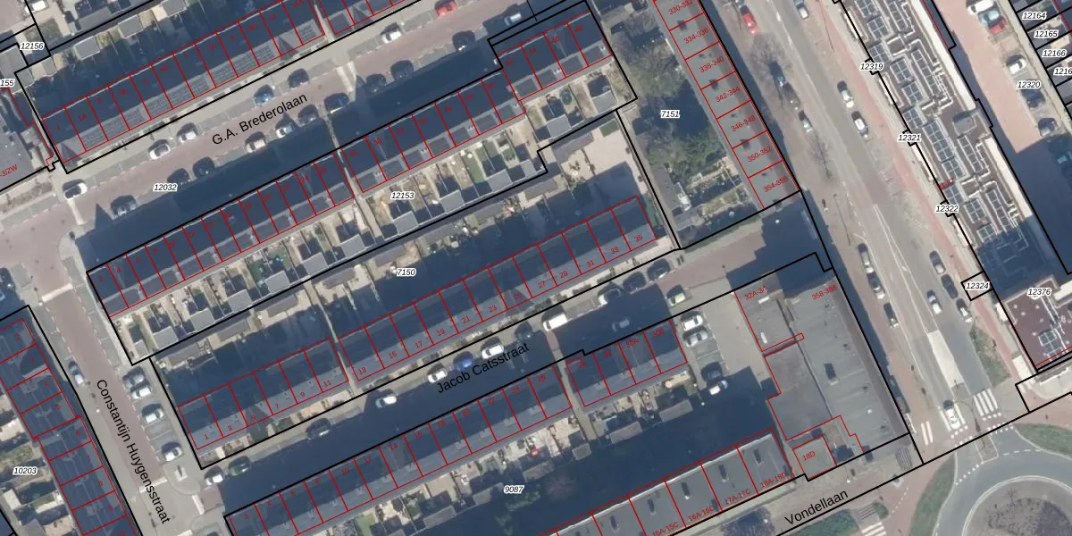Het perceel waarop Jacob Catsstraat 27 staat heeft een oppervlakte van 2365 m². Dit is een zeer groot perceel. De perceeloppervlakte wordt geregistreerd door het Kadaster. Gedetailleerde informatie over de maten van dit perceel kunt u vinden in het rapport Kadastrale kaart met maatvoering van Jacob Catsstraat 27.