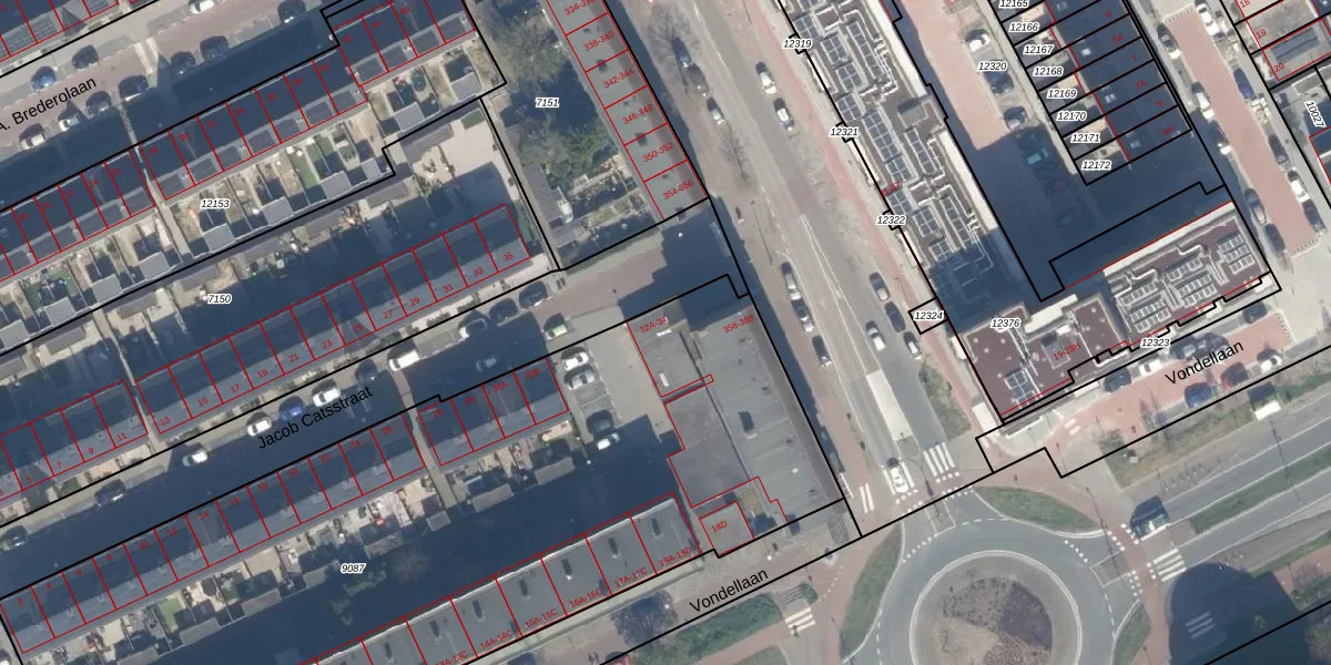 Het perceel waarop Jacob Catsstraat 32-B staat heeft een oppervlakte van 4774 m². Dit is een zeer groot perceel. De perceeloppervlakte wordt geregistreerd door het Kadaster. Gedetailleerde informatie over de maten van dit perceel kunt u vinden in het rapport Kadastrale kaart met maatvoering van Jacob Catsstraat 32-B.