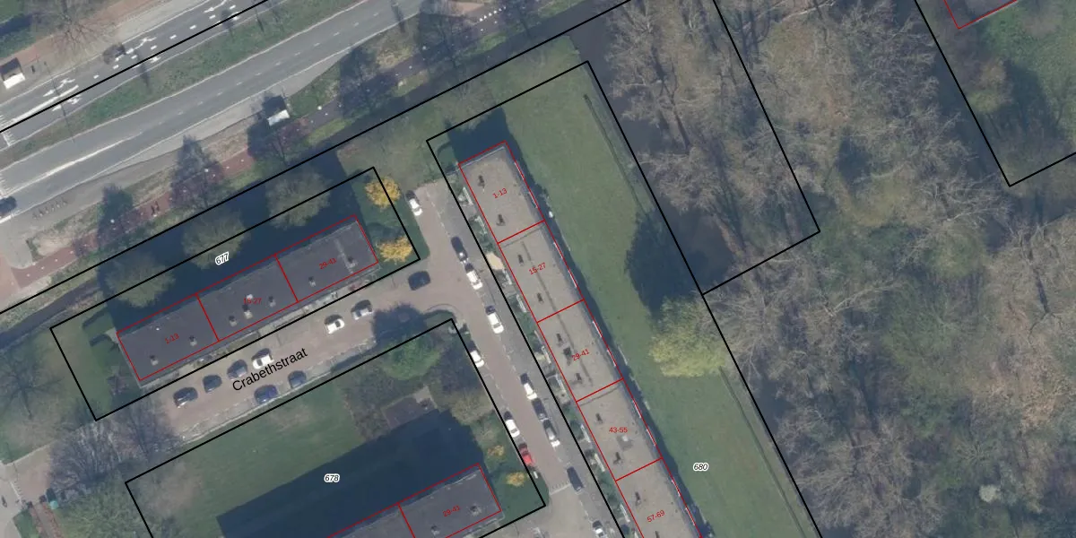Het perceel waarop Jeroen Boschstraat 21 staat heeft een oppervlakte van 5055 m². Dit is een zeer groot perceel. De perceeloppervlakte wordt geregistreerd door het Kadaster. Gedetailleerde informatie over de maten van dit perceel kunt u vinden in het rapport Kadastrale kaart met maatvoering van Jeroen Boschstraat 21.
