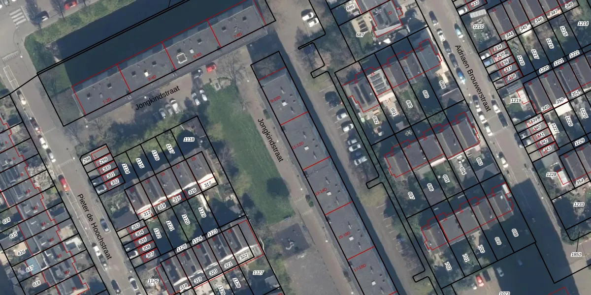 Het perceel waarop Jongkindstraat 11-D staat heeft een oppervlakte van 3830 m². Dit is een zeer groot perceel. De perceeloppervlakte wordt geregistreerd door het Kadaster. Gedetailleerde informatie over de maten van dit perceel kunt u vinden in het rapport Kadastrale kaart met maatvoering van Jongkindstraat 11-D.