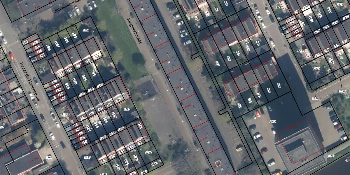 Het perceel waarop Jongkindstraat 15-B staat heeft een oppervlakte van 3830 m². Dit is een zeer groot perceel. De perceeloppervlakte wordt geregistreerd door het Kadaster. Gedetailleerde informatie over de maten van dit perceel kunt u vinden in het rapport Kadastrale kaart met maatvoering van Jongkindstraat 15-B.
