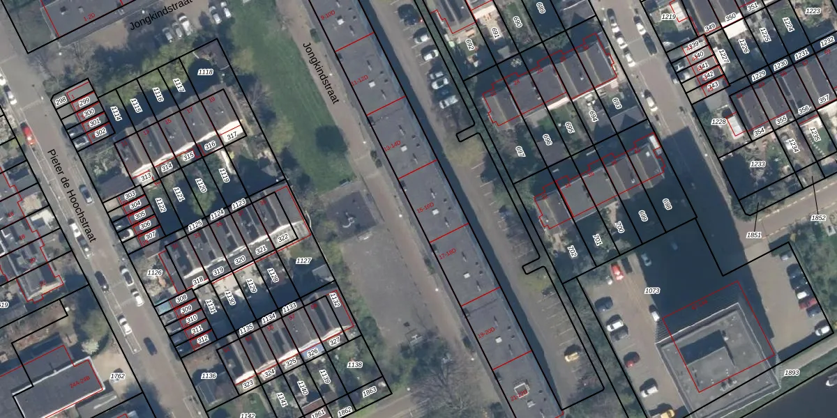 Het perceel waarop Jongkindstraat 16-B staat heeft een oppervlakte van 3830 m². Dit is een zeer groot perceel. De perceeloppervlakte wordt geregistreerd door het Kadaster. Gedetailleerde informatie over de maten van dit perceel kunt u vinden in het rapport Kadastrale kaart met maatvoering van Jongkindstraat 16-B.