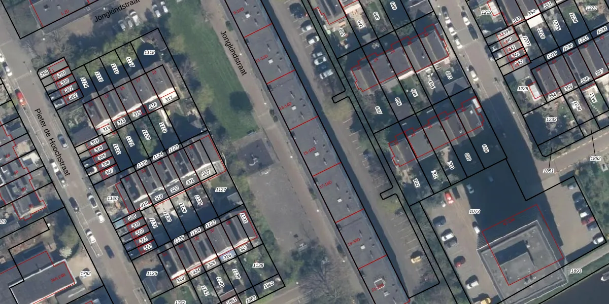 Het perceel waarop Jongkindstraat 16-D staat heeft een oppervlakte van 3830 m². Dit is een zeer groot perceel. De perceeloppervlakte wordt geregistreerd door het Kadaster. Gedetailleerde informatie over de maten van dit perceel kunt u vinden in het rapport Kadastrale kaart met maatvoering van Jongkindstraat 16-D.