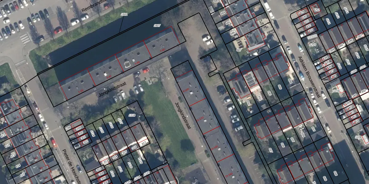 Het perceel waarop Jongkindstraat 9-D staat heeft een oppervlakte van 3830 m². Dit is een zeer groot perceel. De perceeloppervlakte wordt geregistreerd door het Kadaster. Gedetailleerde informatie over de maten van dit perceel kunt u vinden in het rapport Kadastrale kaart met maatvoering van Jongkindstraat 9-D.