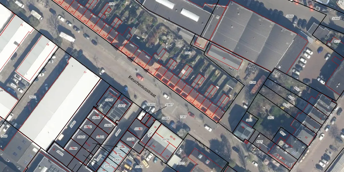 Het perceel waarop Keucheniusstraat 18 staat heeft een oppervlakte van 6380 m². Dit is een zeer groot perceel. De perceeloppervlakte wordt geregistreerd door het Kadaster. Gedetailleerde informatie over de maten van dit perceel kunt u vinden in het rapport Kadastrale kaart met maatvoering van Keucheniusstraat 18.