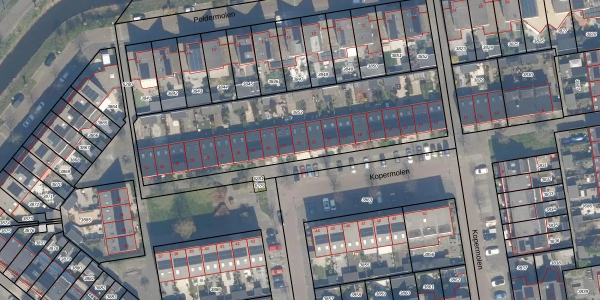Het perceel waarop Kopermolen 22 staat heeft een oppervlakte van 2388 m². Dit is een zeer groot perceel. De perceeloppervlakte wordt geregistreerd door het Kadaster. Gedetailleerde informatie over de maten van dit perceel kunt u vinden in het rapport Kadastrale kaart met maatvoering van Kopermolen 22.