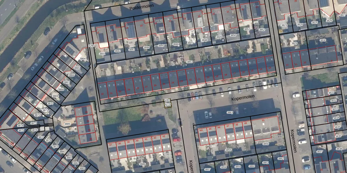 Het perceel waarop Kopermolen 24 staat heeft een oppervlakte van 2388 m². Dit is een zeer groot perceel. De perceeloppervlakte wordt geregistreerd door het Kadaster. Gedetailleerde informatie over de maten van dit perceel kunt u vinden in het rapport Kadastrale kaart met maatvoering van Kopermolen 24.