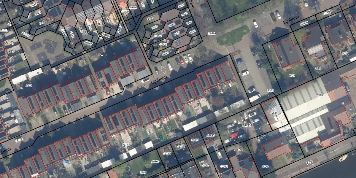 Het perceel waarop Lijnbaan 102 staat heeft een oppervlakte van 5738 m². Dit is een zeer groot perceel. De perceeloppervlakte wordt geregistreerd door het Kadaster. Gedetailleerde informatie over de maten van dit perceel kunt u vinden in het rapport Kadastrale kaart met maatvoering van Lijnbaan 102.