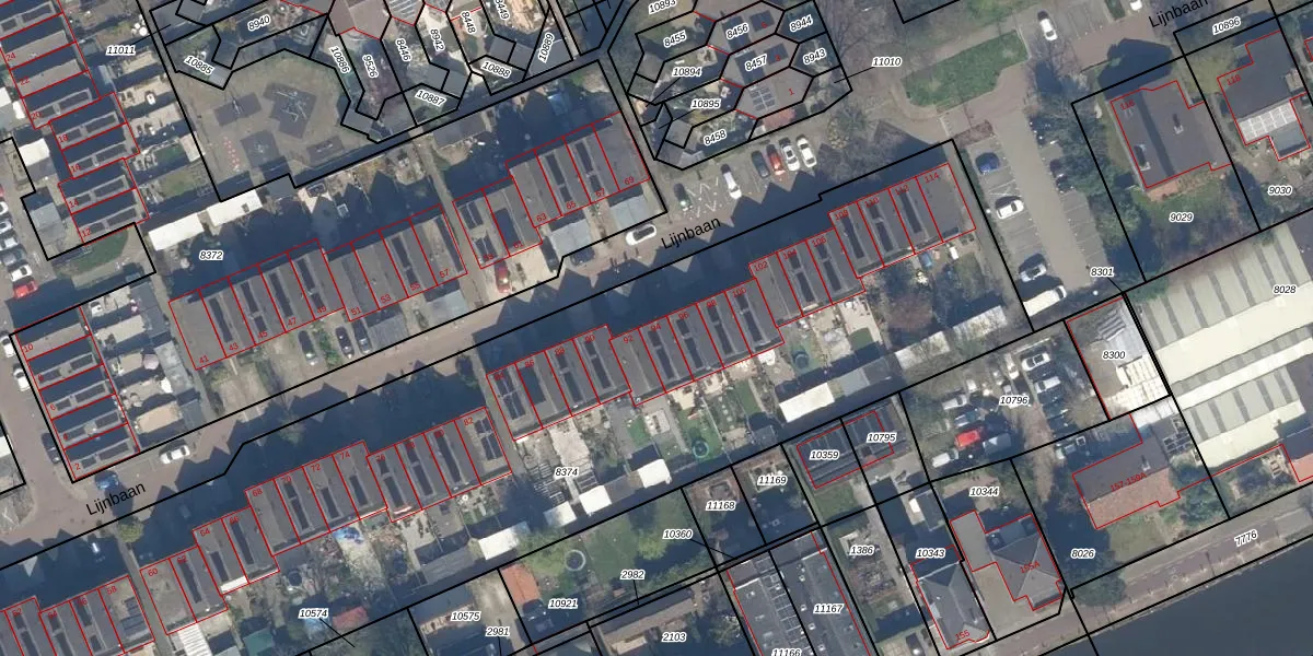 Het perceel waarop Lijnbaan 94 staat heeft een oppervlakte van 5738 m². Dit is een zeer groot perceel. De perceeloppervlakte wordt geregistreerd door het Kadaster. Gedetailleerde informatie over de maten van dit perceel kunt u vinden in het rapport Kadastrale kaart met maatvoering van Lijnbaan 94.