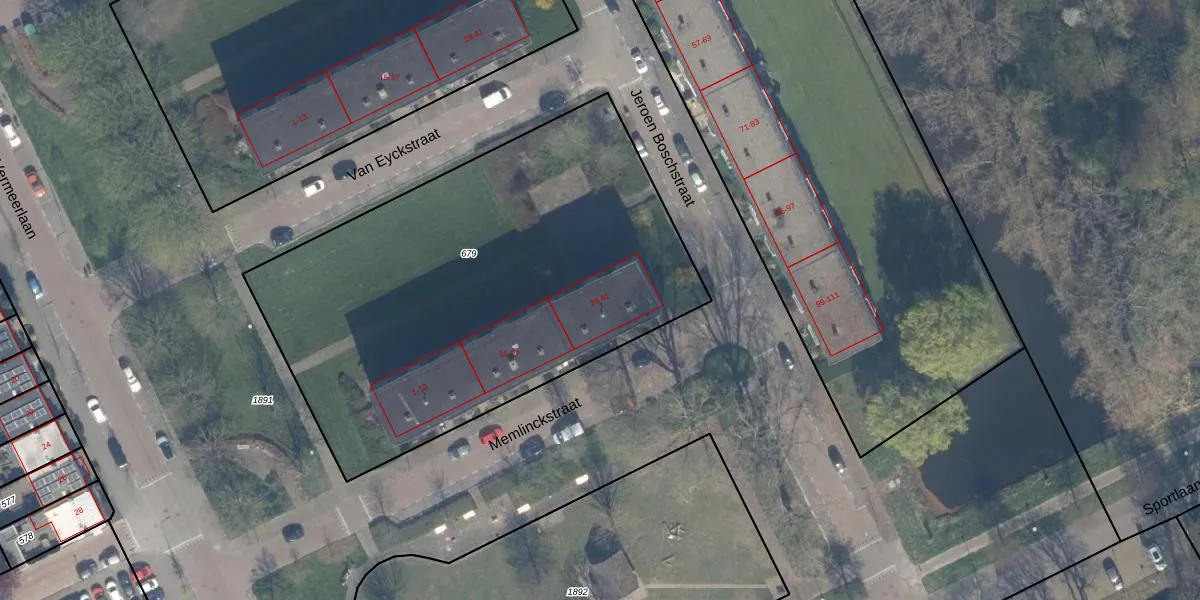 Het perceel waarop Memlinckstraat 29 staat heeft een oppervlakte van 2594 m². Dit is een zeer groot perceel. De perceeloppervlakte wordt geregistreerd door het Kadaster. Gedetailleerde informatie over de maten van dit perceel kunt u vinden in het rapport Kadastrale kaart met maatvoering van Memlinckstraat 29.