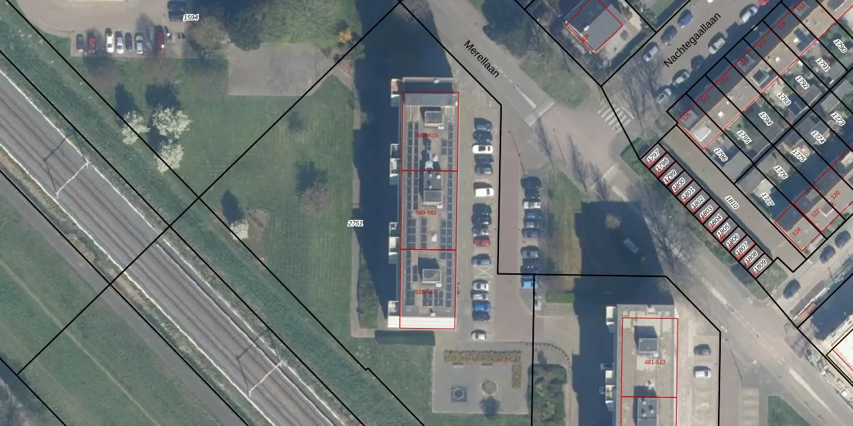 Merellaan 563 is gelegen op kadastraal perceel MSS00A2751. Deze kadastrale aanduiding is uniek en wordt gebruikt door het Kadaster om eigendomsrechten en andere zakelijke rechten vast te leggen. Het perceel maakt onderdeel uit van de kadastrale gemeente Maassluis.